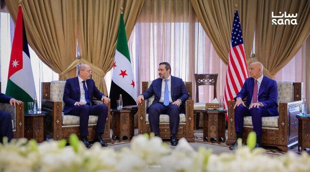 بنا بر روایت ایسنا، «اسعد الشیبانی» وزیر خارجه موقت سوریه در این نشست خبری مشترک با «ایمن الصفدی» وزیر خارجه اردن و «تام باراک» نماینده آمریکا در سوریه گفت: «ما در حال ورق زدن صفحه جدیدی در سوریه هستیم و وحدت و عدالت را برقرار می‌کنیم. ما در تلاشیم تا همه کسانی را که به غیرنظامیان آسیب رسانده‌اند، پاسخگو کنیم.»
