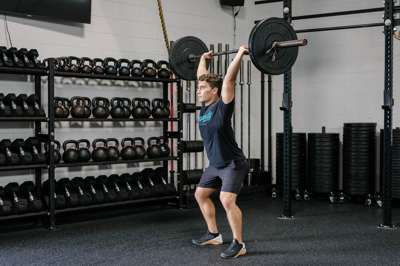 همزمان هالتر را با سرعت و قدرت به بالای سر پرس کنید