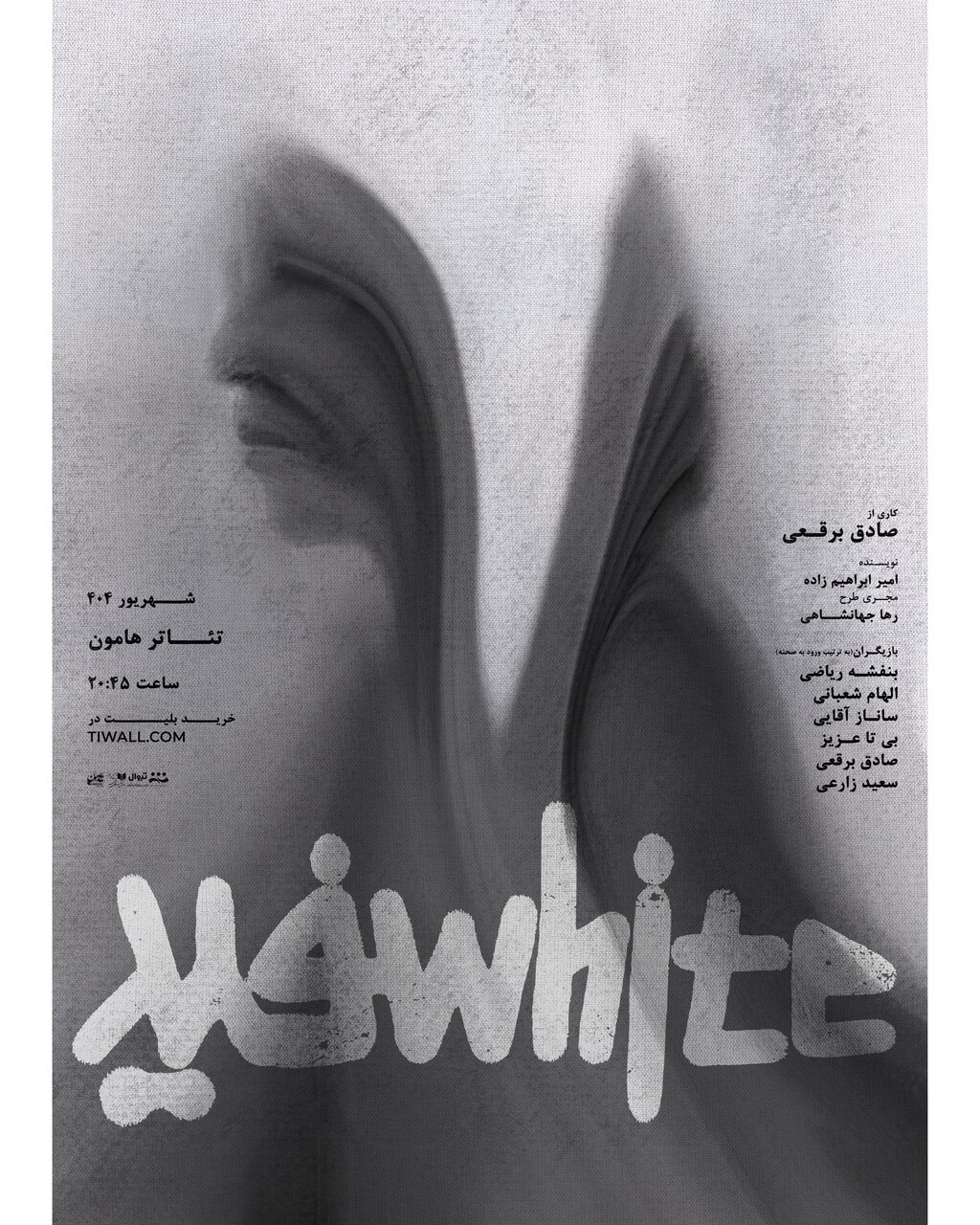 پوستر تئاتر «سفید» به نویسندگی امیر ابراهیم زاده و کارگردانی صادق برقعی همزمان با اولین روز اجرا منتشر شد.