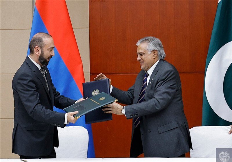 به گزارش نیوز تودی، وزارت امور خارجه ارمنستان اعلام کرد آرارات میرزویان و محمد اسحاق دار، وزرای خارجه ارمنستان و پاکستان، در چین بیانیه مشترکی را در خصوص برقراری روابط دیپلماتیک میان دو کشور امضا کردند. بنا بر گزارش تسنیم، مراسم امضای این سند در حاشیه اجلاس سران سازمان همکاری شانگهای (SCO) که در شهر